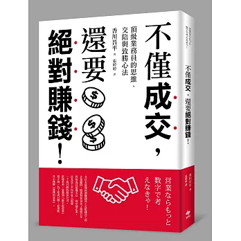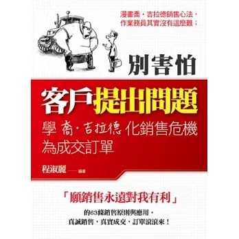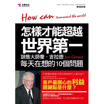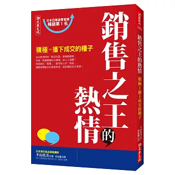 詳細資料ISBN:9789868598096 叢書系列:企管銷售 規格:平裝 / 240頁 / 16K菊 / 14.8 X 21 CM / 普通級/ 單色印刷 / 初版 出版地:台灣 內容簡介 大學畢業後就投入謢理工作,因態度熱忱、工作表現傑出,年紀輕輕就晉升為護理部督導,加上先生是醫師的緣故,以為會在這行業待到退休。直到有一回,兒子因感染輪狀病毒,她向保險公司申請理賠並和業務員多次接觸後,才驚覺對投保內容的了解是如此的薄弱,而業務員的資訊也不夠完整,甚至得不到應有的理賠與援助。心想,若像自己這樣擁有專業醫療背景的人,都會有求助無門的時候,更何況是其他人? 因懷有南丁格爾那種想幫助人、服務人的精神,三十五歲那年,作者毅然決然辭去護理督導的工作,隨即進入壽險公司,不但得不到身旁親友的支持,還招來許多異樣眼光。從一個對壽險一無所知,不知去哪裡找客戶的初階行銷人員,二十年後的今天,變成了帶領兩個通訊處的處經理,她已栽培了無數高階主管,單位年營業額破兩億,一路走來,無所畏懼,所謂成功的真理,就是「簡單的事,重複做」,因為天底下沒有不勞而獲的事。作者簡介蘇明玉 【現任】 南山人壽翔譽通訊處&光復II通訊處 處經理 【學歷】 台中弘光科技大學 逢甲大學保險學經理進階班 南澳大學企業管理碩士 【經歷】 台中仁愛醫院護理部督導 80.03.25 與南山簽約 80.06.01 專職 80.12.01 晉升主任 81.12.01 晉升襄理 83.03.01 晉升區經理 86.12.01 成立翔譽通訊處 1995~1997 豐原中央扶輪社創社社長 1997~1998 地區執行秘書 1999~2000 國際扶輪3460地區區總監代表 當選第五屆中國媽媽 台中市四張犁國小家長會會長 台中市蘇周連宗親會第三屆理事長 【得獎記錄】 二十九週年慶主任智組第三名 全國第六名 三十週年慶通訊處仁組三強第一名 三十週年慶襄理組第四名80年業代組國慶杯第八名 81年國慶杯第四名 81年意外險主任紅第二名 82~94年高峰會議 83年極峰會議襄理組第一名 86、87、89年上林會議 87年榮譽會區經理組第四名 89年極峰會議區經理組第四名 89年萬人業務大會中區總會長 90年極峰會議區經理組第五名 90年榮譽會區經理組第七名 90年榮譽會中區會長 91年榮譽會中區會長 海外國外旅遊【加拿大多倫多】 第一屆環球會議【蒙地卡羅】 95年加拿大極峰第一副總會長 96年榮譽會第二副總會長 96年極峰會議區經理組第四名 96年M2通訊處組冠軍 96年13人極峰,9人排名,4人第一名 96年金鷹會頂尖會員∕超級會員 96年北京雄鷹盃中區總會長 96年法國巴黎環球會議第三副總會長 96年環球會議M2通訊處第四名 97年榮譽會第二副總會長 97年拉斯維加斯極峰第二副總會長 97年金鷹會頂尖會員∕超級會長 97年榮譽會M2通訊處第四名 97年布拉格環球會議 98年榮譽會第三副總會長 98年極峰會議 98年大型通訊處第三名 99年極峰會議 99年大型通訊處第四名 100年極峰會議第一副總會長 |