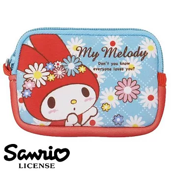 【日本進口正版】三麗鷗 美樂蒂 My Melody 防震 零錢包/卡片包/收納包 -水藍款