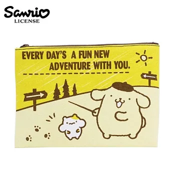 【日本正版授權】布丁狗 Pom Pom Purin 帆布 扁筆袋 M號 筆袋/收納包/化妝包 三麗鷗