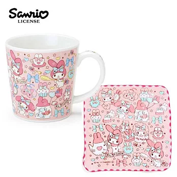 【日本正版授權】三麗鷗人物 陶瓷 馬克杯 小方巾 250ml 咖啡杯 Sanrio -美樂蒂
