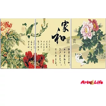 產品說明 品 名:【93050】家和富貴 三拼畫 色 數 : 32 難易度: 中 尺 寸: 50*50CM * 3幅 內容物:高級進口亞麻油畫布 + 實木内框 + 環保丙烯油畫顏料組合包 +畫筆3支(1大1中1小) + 壁掛釘組合 + 號碼線圖紙 + 精美彩盒包裝 藝術生活 數字油畫_中天綜合台專訪_YOUTUBE