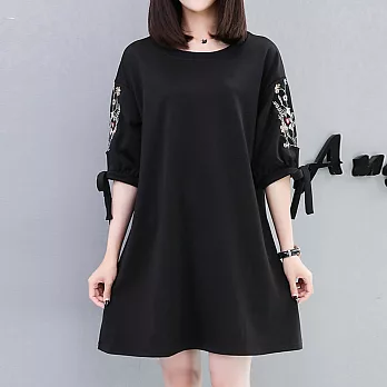 產品內容物與規格說明/保固資訊* 內含 : 花朵刺繡綁帶造型五分袖洋裝1022330 * 顏色 : 黑 * 材質 : 100%聚酯纖維 * 尺寸 : M / L / XL * 產地 : 中國