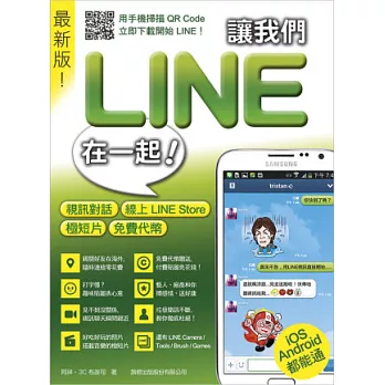 詳細資料ISBN:9789863120964 規格:平裝 / 21 X 14.8 X 1.5 CM / 普通級/ 全彩印刷 / 初版 出版地:台灣 內容簡介 LINE是一款橫跨各大手機系統的免費即時通訊軟體, 目前當紅的 IPHONE、IPAD 與 ANDROID 手機都可以使用。你可以透過它隨時與遠在海外的親朋好友即時傳訊, 只要連上網路, 就能與親友聊個夠, 彼此連繫感情無時差、零距離! ●突然好想聽到對方的聲音喔, 快用 LINE 語音聊天! ●海外住的地方今早飄雪了, 快 LINE 照片、影片傳回給國內親友! ●沒辦法一起圍爐團聚, 快 LINE 年夜飯大合照解解癮吧! ●哇!在路上看到名人了, 快用 LINE 通報位置, 好康大家看! ...... LINE 就是這麼好用!當然不要忘了加些逗趣貼圖增加歡樂氣氛, 趕快跟親朋好友一起痛快的 LINE 吧! 本書特色 ●過年節慶快用 LINE 拜年, 做個環保現代人 ●親朋好友在海外, 隨時連絡零花費 ●打字慢?趣味貼圖表心意, 語音聊天也 OK ●好吃好玩的照片.影片.位置立即分享 ●藝人、廠商和你搏感情、送好康 ●還有 LINE CAMERA /TOOLS / CAFE / GAMES, 玩不完的各種 LINE 周邊APP ●不分平台 IOS、ANDROID、WINDOWS PHONE、BLACKBERRY 都能通 |